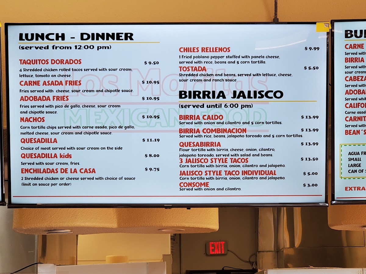 Los Moritas offers a straightforward, casual menu inspired by traditional Mexican flavors, perfect for those looking for satisfying, down-to-earth meals. The menu revolves around hearty options like burritos, tacos, and plates featuring grilled meats and fresh ingredients, designed to be enjoyed any time from a quick lunch to a relaxed dinner.